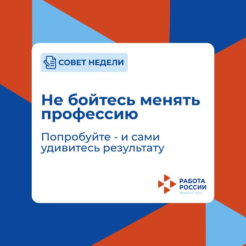 💡Не бойтесь менять профессию Многие думают, что «уже поздно». Но практика показывает обратное: люди находят новое дело и в 30, и в 50, и даже в 60 лет. Главное — решиться и попробовать. Перемены часто открывают больше дверей, чем кажется на старте. 👩💻В кадровом центре Сахалинской области помогают пройти переобучение, подобрать востребованную профессию и найти работодателя, который ценит опыт и желание развиваться. #Совет_недели