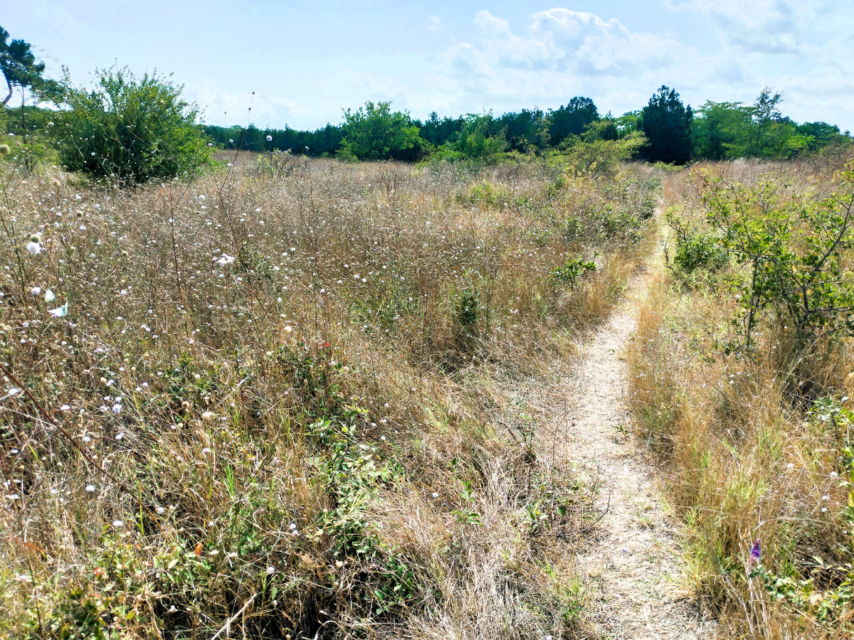 Когда идешь весной, трава пышная и зеленая. Сейчас она цвета золотой пшеницы.