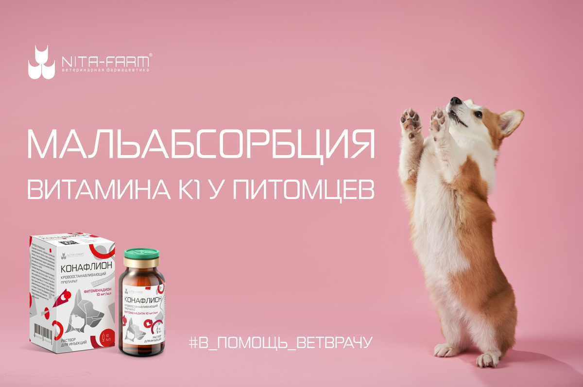 Компания НИТА-ФАРМ выпускает ветеринарный антигеморрагический препарат «Конафлион» – фитоменадион (активный витамин K1). Фитоменадион – это синтетический аналог природного витамина K1, принимающего активное участие в процессах свертывания крови (II, VII, IX, X) и регуляции гемостаза. Этот компонент крайне важен для образования белков, участвующих в коагуляции. Он быстро восстанавливает концентрацию белков и обеспечивает высокий терапевтический эффект за счет высокой биодоступности.