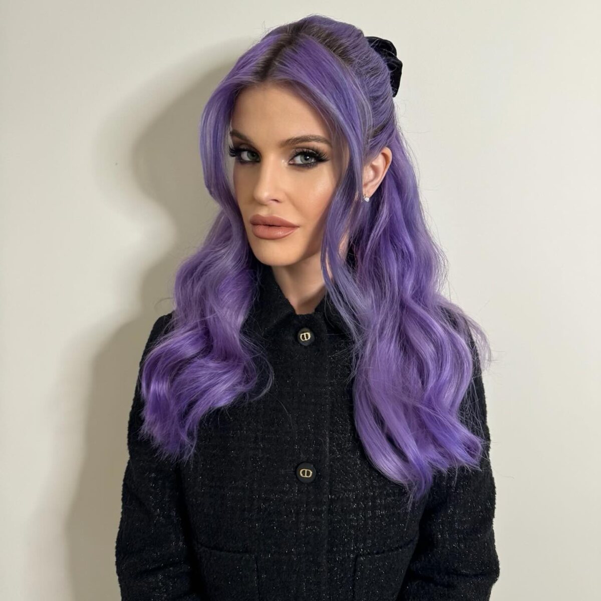 Дженна Ортега тоже не осталась в стороне и покрасила волосы в сливовый оттенок. Чаще всего его практически не видно на чёрных локонах актрисы, но иногда контрастность и яркий свет позволяет разглядеть новый имидж знаменитости.