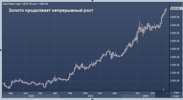 Цена золота достигла нового максимума, превысив $3800 за унцию