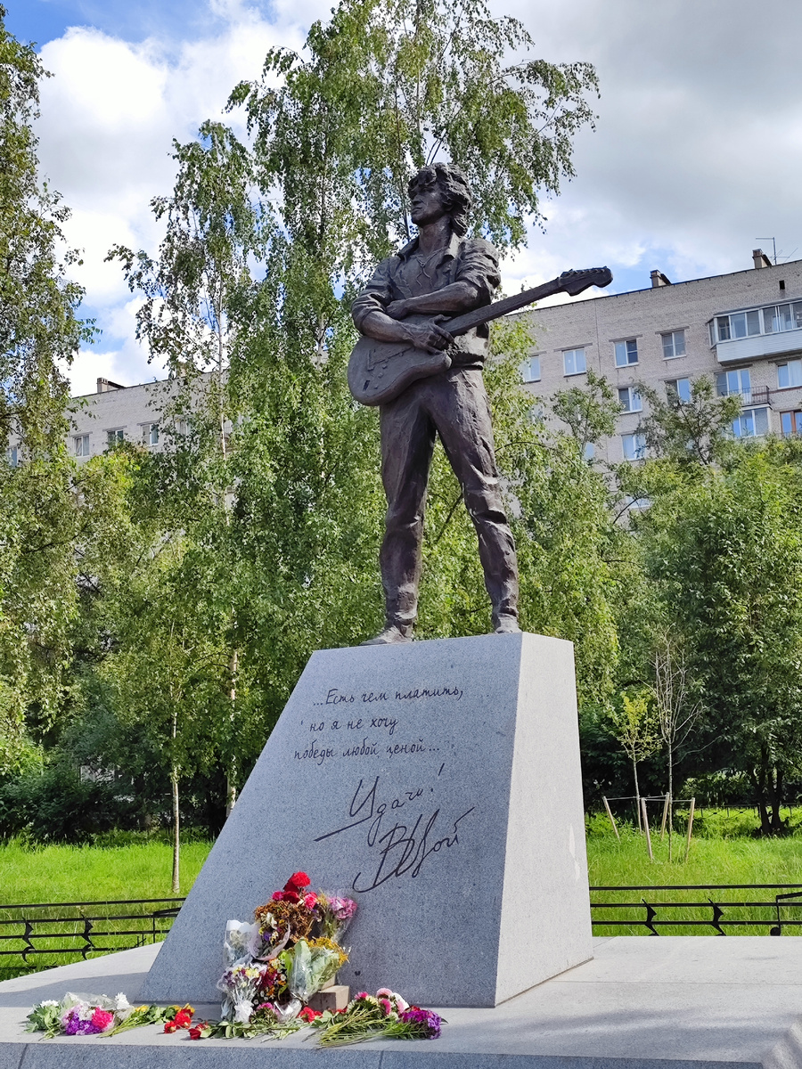 Моя подруга Ира ярая поклонница Виктора Цоя, и все, что с ним связано, для нее очень свято. В первый же день, когда она приехала в Питер, тут же потащила меня к памятнику Цоя, который расположен в сквере на пересечении проспекта Ветеранов и улицы Танкиста Хрустицкого. А через несколько дней она повела меня на выставку-байопик «Виктор Цой. Легенда» в Севкабель Порту. Я ожидала, что будет простой музейный сборник. Но оказалось, что это настоящее кинопутешествие. Каждый зал как кадр из фильма о жизни Цоя: начиная с классических вещей (гитар, сценических костюмов, фотографий из семейного архива) и заканчивая футуристическими инсталляциями. Я не ожидала, что будет такая атмосфера! Необычные инсталляции, гигантская скульптура Цоя. Коридор с ярко-жёлтыми стенами, увешанный фотографиями из его жизни. Тут же черновики и наброски песен. Полное погружение и ощущение, что сама находишься внутри сцены из фильма. Я впервые увидела картины и рисунки Цоя, о которых раньше не подозревала. Вся экспозици