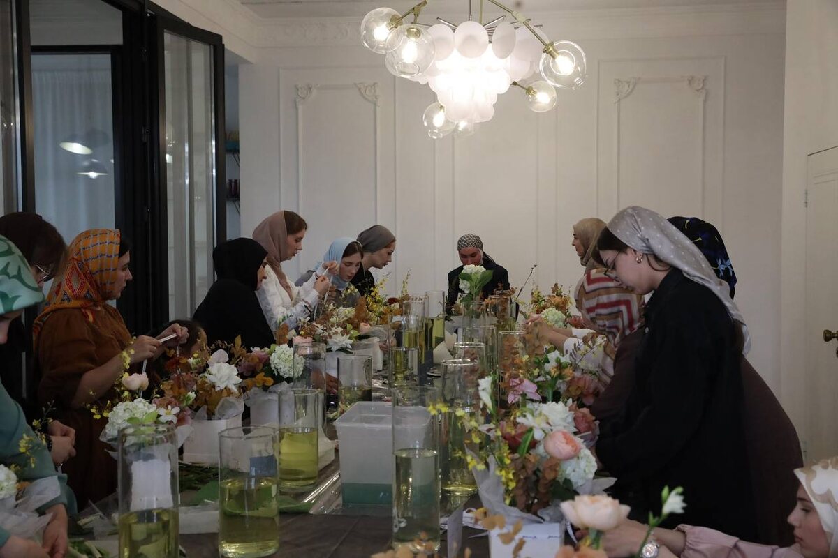 Под руководством опытных флористов участницы собрали композиции из осенних цветов, которые забрали с собой на память. Мастер- класс по флористике - первый из целого цикла, запущенного по инициативе руководителя проекта Woman in Islam Хутмат Кадыровой.