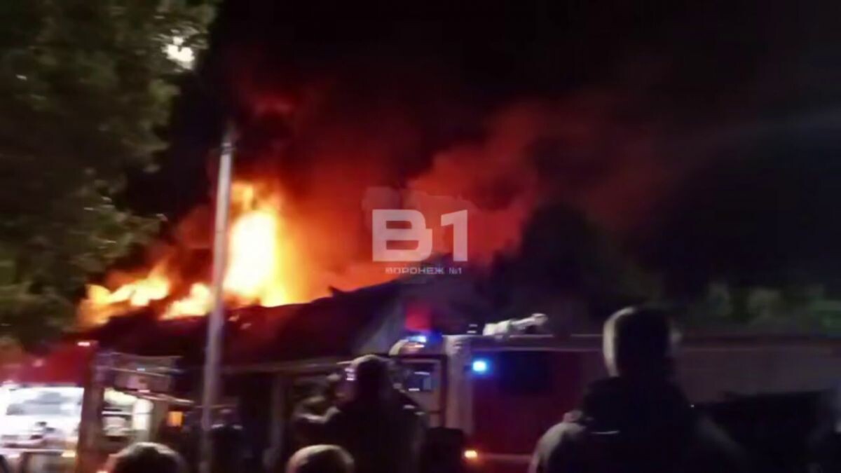 В Воронеже ночной пожар, уничтоживший второй этаж автосервиса, попал на камеры очевидцев. Роликом поделились в местных соцсетях.