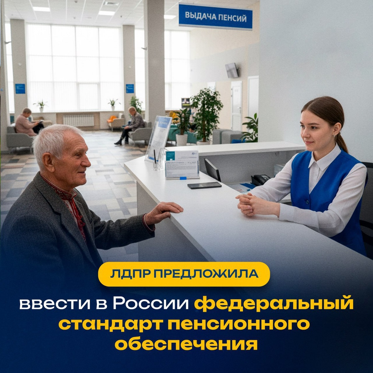 Леонид Слуцкий предложил поддержать пенсионеров в регионах — ввести федеральный стандарт пенсионного и социального обеспечения Сегодня размер пенсий в регионах России значительно отличается: где-то есть дополнительные меры поддержки, а где-то пожилые люди вынуждены довольствоваться минимальными выплатами. Федеральный стандарт поможет добиться справедливых выплат для пожилых людей, создать единую систему поддержки, где каждый пенсионер, вне зависимости от места проживания, будет получать равные базовые гарантии и соцвыплаты. «Пока нет федерального стандарта пенсионного и социального обеспечения, который бы гарантировал, что все пенсионеры во всех регионах получают единые для всех пенсионеров льготы и доплаты на федеральном уровне. Нужно сделать следующий шаг. ЛДПР приступает к законодательному оформлению идеи такого федерального стандарта, равного для всех и обеспечивающего достойную базу для обеспечения комфортной жизни пожилых людей. Русский — не значит бедный!» — заявил Леонид Слу