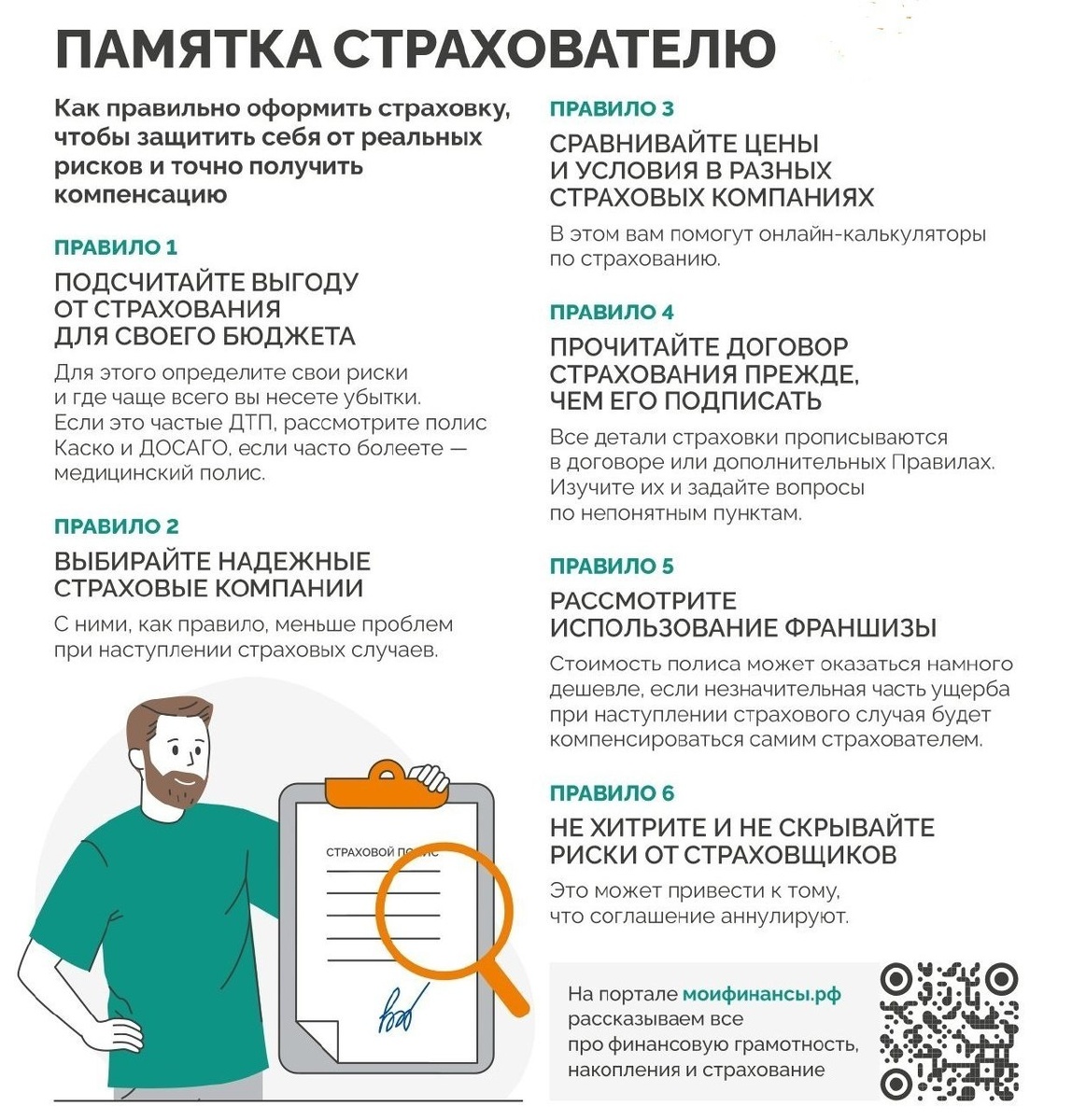 Стартовал шестой этап Всероссийской просветительской эстафеты «Мои финансы», посвящённый теме «Думай о будущем: страхование и накопления». В рамках данного этапа делимся памяткой, как правильно оформить страховку, чтобы защитить себя от реальных рисков и точно получить компенсацию. Мы часто воспринимаем страховки как навязывание лишних услуг и бесполезную трату денег. Но при правильных расчетах своих рисков и выборе подходящего именно вам продукта, страхование может оказаться самым действенным способом уберечь бюджет от провала в финансовую яму. рубрика #вопросы_экономики