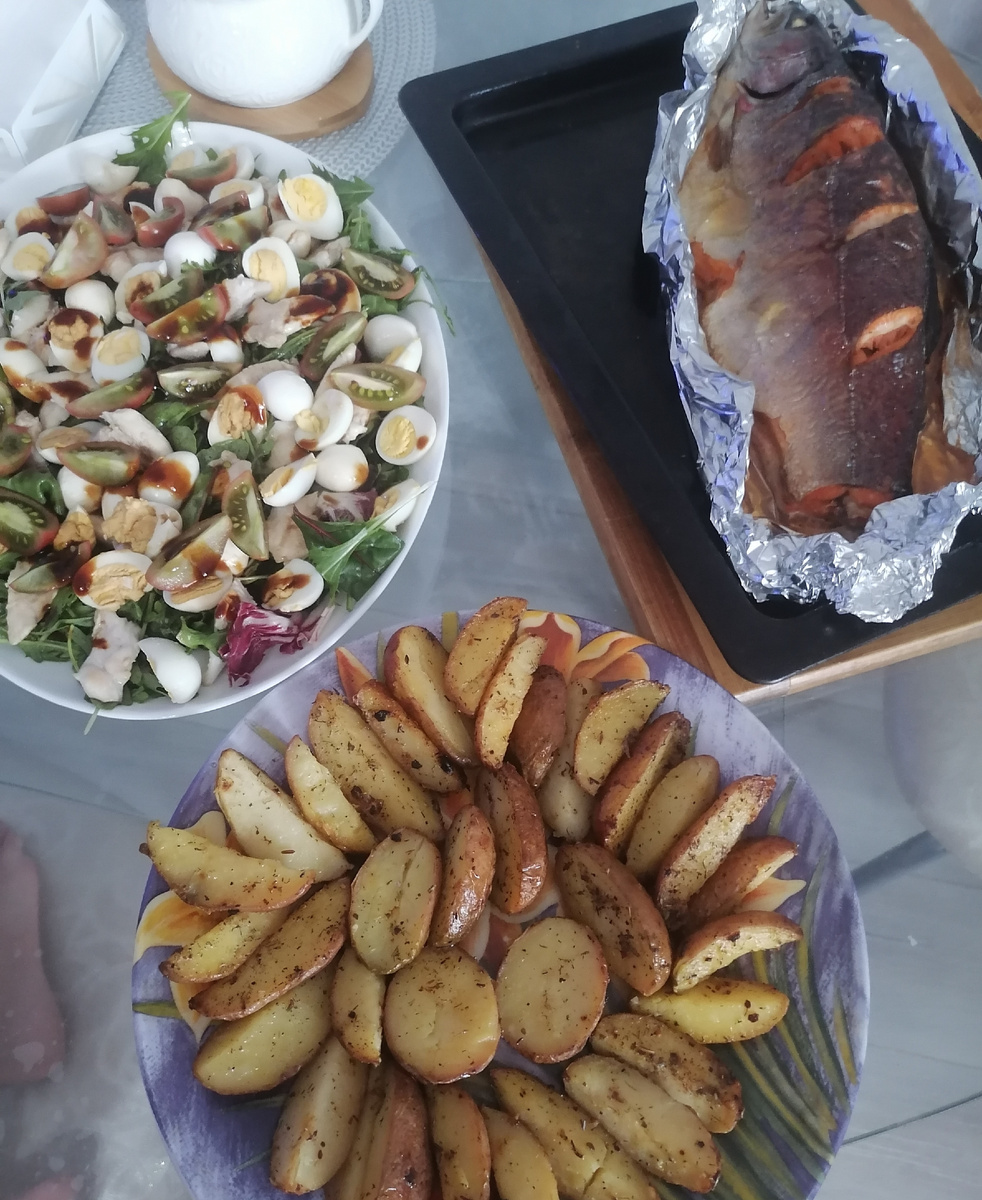 В выходные приезжали бабушка с дедушкой, была закупка продуктов и соответственно готовка.