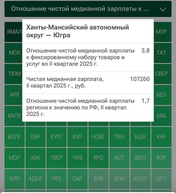 За второй квартал 2025 года чистая зп в ХМАО — 107 260 ₽. Данные указаны в исследовании РИА Рейтинг.