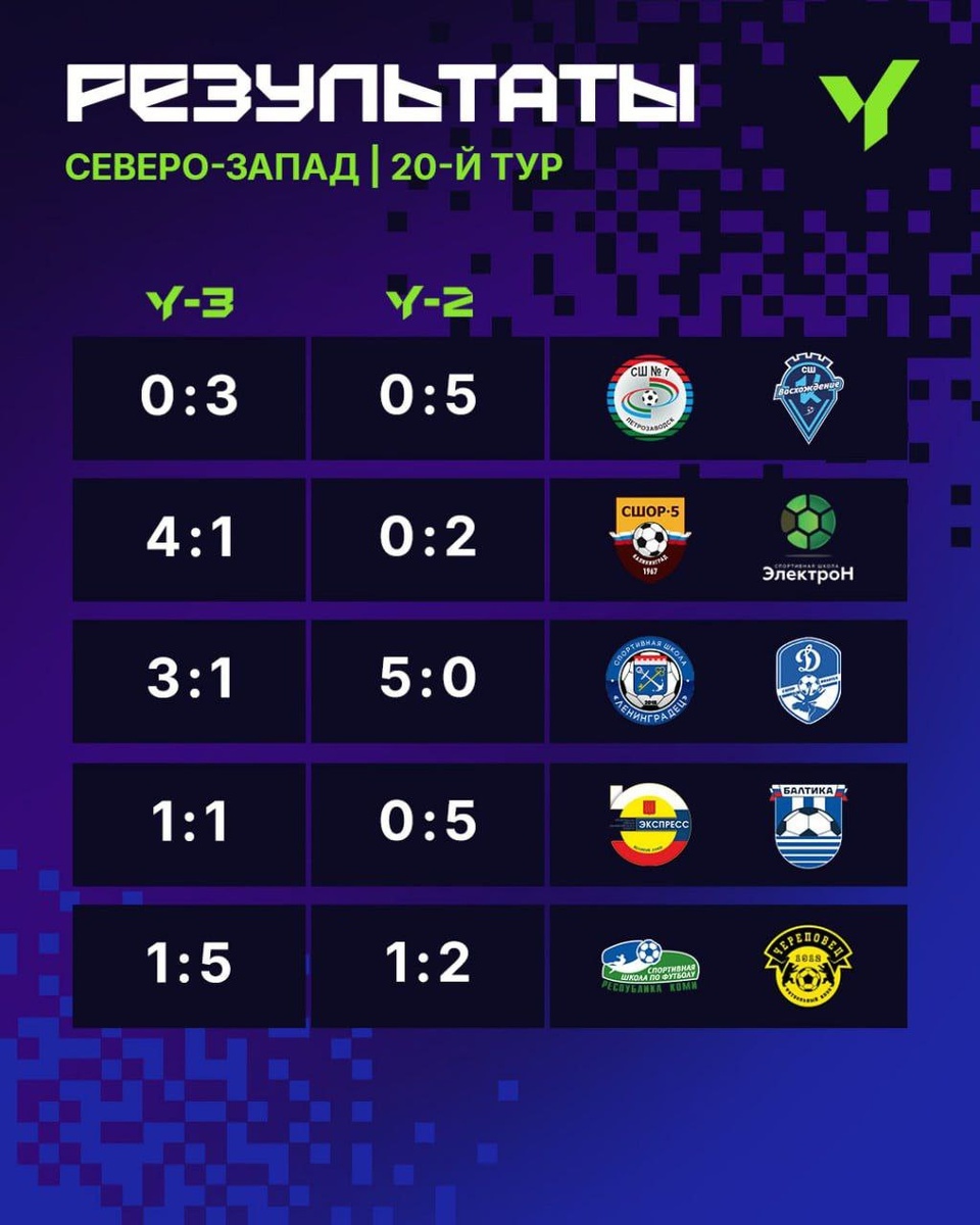 Результаты и турнирная таблица после 20-го тура ЮФЛ Северо-Запад