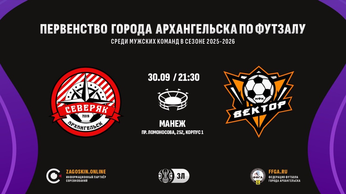 ⚽️ СЕВЕРЯК ⚽️ ⚔️ ⚽️ ВЕКТОР-2 ⏰ Начало матча — 21:30 🏟 Манеж 📺 Трансляция: VK Video
