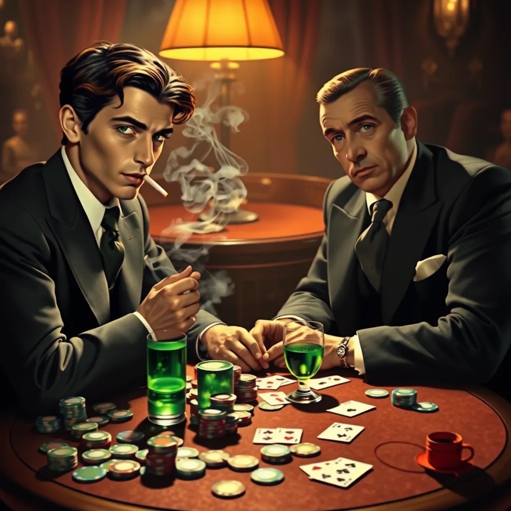 Марсель взглянул на свой бокал и сделал маленький глоток. Горький абсент обжёг язык, но придал ясность. Он посмотрел на карты и на незнакомца, улыбнувшись: игра начиналась. С каждой разложенной картой воздух становился плотнее, а музыка словно аккомпанемент к внутренней битве двух одинаково хитрых и опасных игроков.