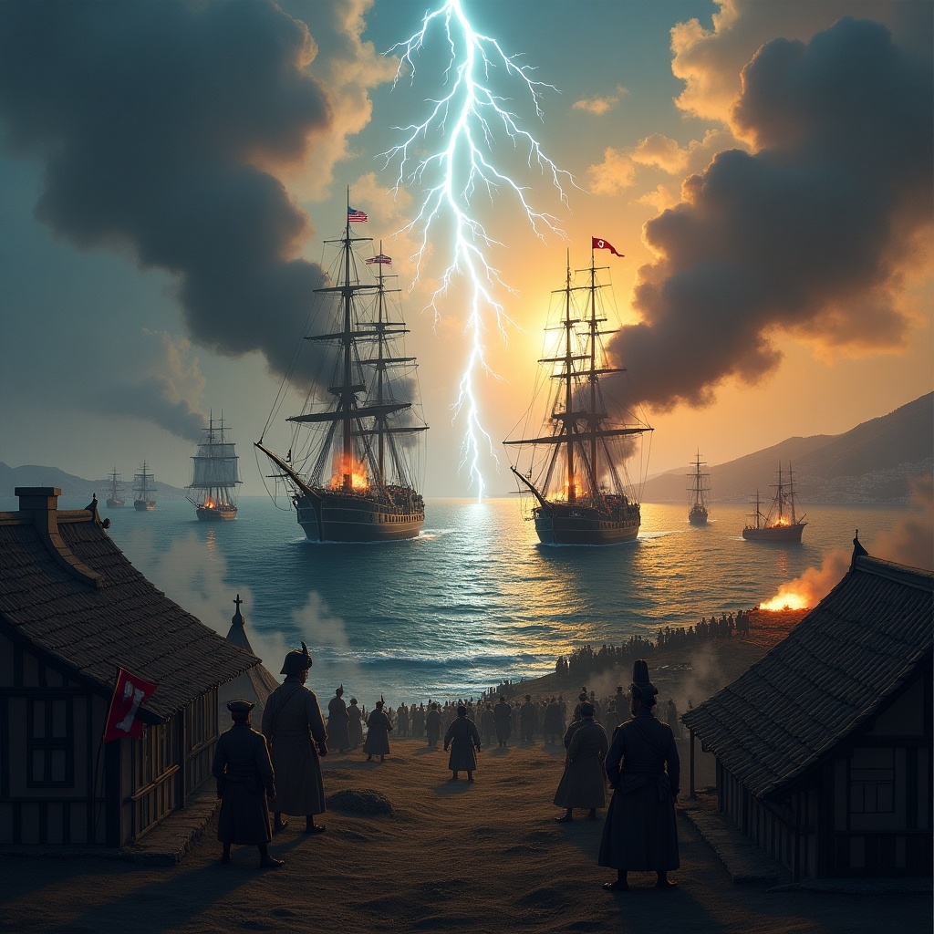 Представьте: в один и тот же год — 1853-й — в двух концах света всё переворачивается с ног на голову. В Японии к берегам подходит американский эскадрон с «чёрными кораблями». А в России начинается Крымская война. И то, и другое — про одно и то же: как встреча с Западом ломает привычный порядок. 8 июля 1853 года в бухту Урага, неподалёку от Эдо (сегодняшний Токио), вошла американская эскадра под командованием коммодора Мэттью Перри. Четыре огромных паровых фрегата, окрашенные в чёрный цвет (отсюда и прозвище «чёрные корабли»), встали на якорь и развернули пушки к берегу. Представьте реакцию японцев, которые последние двести лет жили по принципу «нас не трогайте, мы вас тоже». У них до этого момента максимум были контакты с голландцами и китайцами через один порт — Нагасаки. А тут — железные махины, дымящие трубами, ревущие пушками. Перри передал ультиматум: откройте порты для торговли, иначе будет плохо. И добавил шоу-программу: залпы холостыми снарядами, военный оркестр, демонстрация п