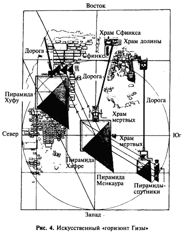 Дорога, ведущая от пирамиды Хуфу , похожа на стрелку солнечных часов, указывающих на на половину угла между направлением на восток и направлением на летнее солнцестояние. Но дорога эта меньше дорог от двух других пирамид и не заканчивается храмом. Возможно, это указывает на то, она указывает не на весеннее равноденствие – март, а на апрель.