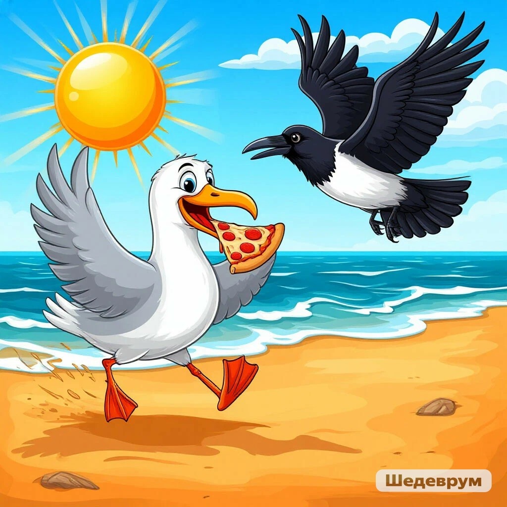 Чайки — гопники пляжа, вороны — местные участковые. Кто победит в этой пернатой разборке? 🐦⚡ Если бы птицы снимались в сериалах, то чайка играла бы роль уличного хулигана, который орёт на всех во дворе, ворона — роль строгого соседа в пижаме, который выгоняет хулиганов метлой, а голубь — философа, который просто сидит и размышляет о вечном (например, о том, кто высыпал хлеб вчера). Но это не сериал — это реальная жизнь, и если ты хоть раз был на пляже с чипсами, ты знаешь: чайки — самые бесстрашные существа на планете. Сегодня мы поговорим о том: почему чайки всегда ведут себя так, будто пляж их личная территория, зачем вороны гоняют чаек, и кто на самом деле «главный» в птичьей мафии. Да, приготовься: ты больше никогда не сможешь смотреть на чаек без лёгкой усмешки. 🥖 Чайка: королева наглости Начнём с главного — чайки никогда не извиняются. Вот представь, ты купил хот-дог, только собрался откусить, и бах! — его больше нет. Ты оглядываешься, а над тобой летит белое пернатое