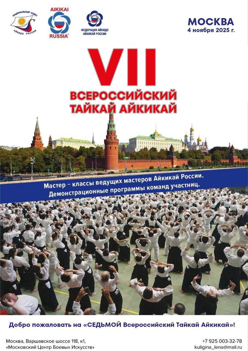 Дорогие друзья, коллеги и единомышленники! Меньше месяца осталось до старта главного события этого года для всего российского айкидо айкикай!🔥🔥🔥 4 ноября в день народного единства в Москве пройдет Ежегодный Фестиваль Айкидо Айкикай «VII Всероссийский Тайкай»!🇷🇺 Традиционно это событие, которое соберет вместе поклонников айкидо айкикай со всей России, предоставляя уникальную платформу для обмена опытом, обучения и популяризации искусства айкидо.🥋 ☝️В самое ближайшее время мы познакомим вас с программой Фестиваля, а также будет рассказывать, как наши регионы готовятся и с нетерпением ждут этого события! 👉Место проведения остается неизменным - Московский Центр Боевых Искусств (Варшавское шоссе, дом 118, корпус 1)! До встречи в Москве на VII Всероссийском Тайкай! #фаар #нсар #тайкай ##айкидо #рсби #айкикай #времяобъединять #ПрезидентскиеГранты