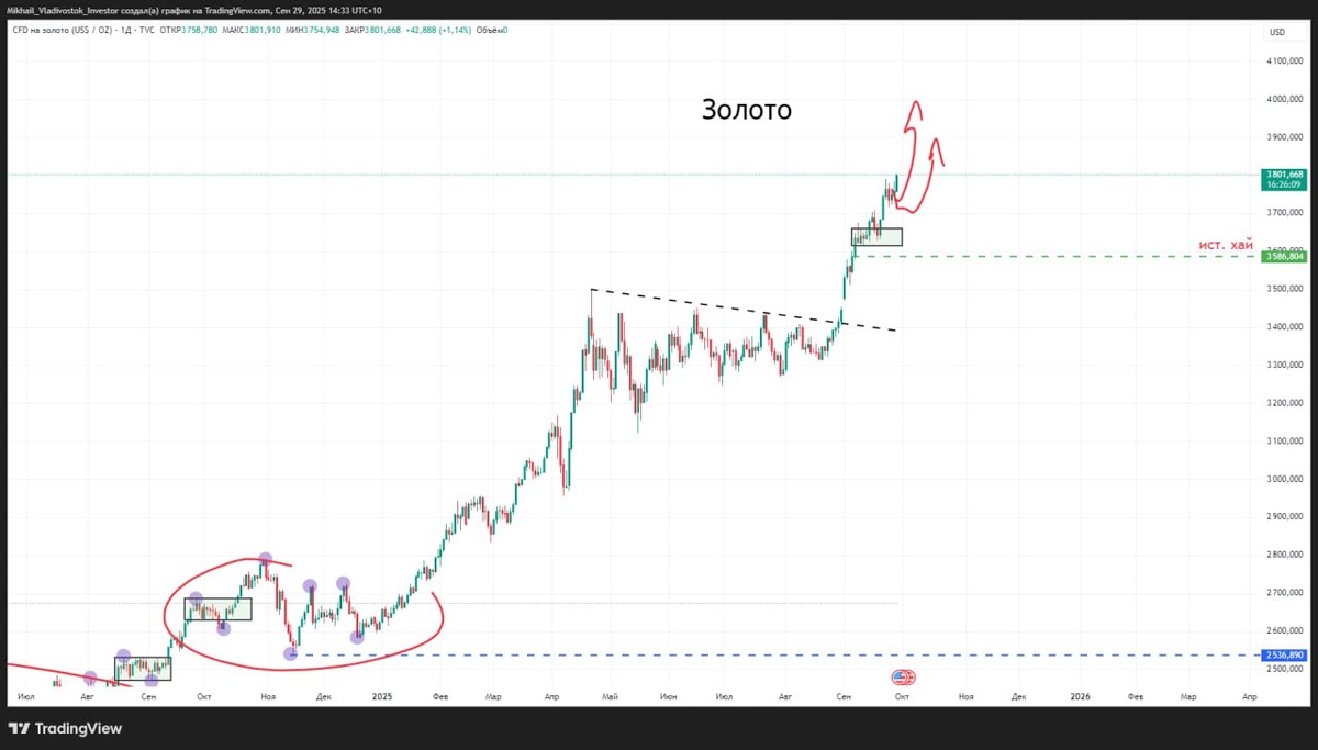 МЕТАЛЛЫ Золото GOLD $GDZ5 Таймфрейм дневной Продолжаем двигаться вверх за глобальной ликвидностью М2. Признаков для коррекции пока нет. Рассматриваем только покупки. О шортах даже речи быть не может. Кто-то будет говорить "Ну оно же выросло сильно. Должно же скорректироваться!". Ну с такими рассуждениями можно без штанов остаться. Работайте по тренду. Платина $PTZ5 Таймфрейм дневной Вышли вверх из боковика довольно уверенно. Ждем коррекцию и пробуем присоединяться по тренду. Палладий $PDZ5 Таймфрейм дневной Уперлись почти в сопротивление 1340-1355. Пока не пробьем его и не закрепимся, покупки я бы не рассматривал. Серебро $SVZ5 Таймфрейм дневной Просто вертикально летим вверх. Никаких признаков коррекции. Так же собственно как и по золоту. Ищем только покупки. О шортах и не думайте даже. #золото #платина #палладий #серебро 🌐 VK | 🤴 YouTube | 😎 Ответы на вопросы | 😎 Курилка-флудилка | 🪙 Канал по крипте