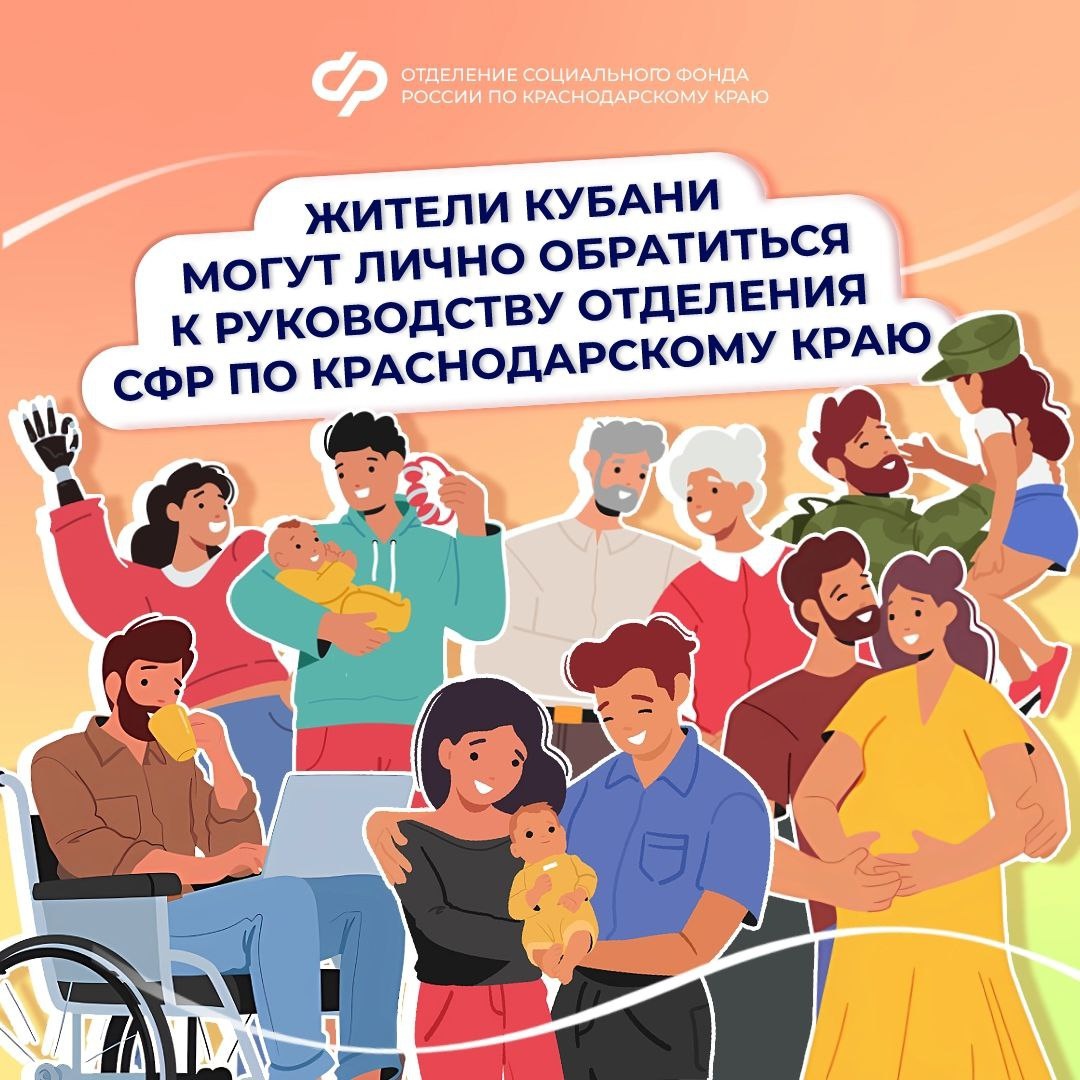 Граждане могут лично обратиться к руководству Отделения Социального фонда России по Краснодарскому краю