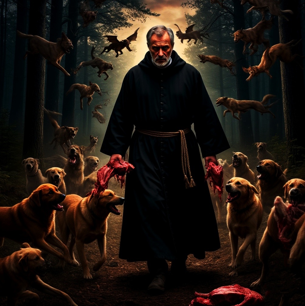 Решил отречься человек от мира, Свое имение богатое продал, И почти все, что в жизни накопил он, Затем он людям нищим, в городе раздал. . Решил монахом стать и жизнь начать сначала, Меж тем, из собственного видно, интереса, Он всё ж себе добра оставил, хоть и мало, И это стало Настоятелю известно. . Авва Антоний, настоятель той обители, Позвал на разговор того монаха, И говорит ему: "Чтоб быть тебе здесь жителем, Ты должен все раздать, оставив лишь рубаху. . Сходи на рынок и купи сырого мяса, Затем все тело свое мясом оберни И возвращайся в монастырь, идя по кромке леса, Когда всё сделаешь, вновь на беседу приходи" . Монах все сделал, как велел ему Святой, Купил на рынке мясо, обернул им тело, Затем по кромке леса он пошел домой, Когда был вечер и уже стемнело. . Когда он шёл, то на него собаки нападали, Пытаясь оторвать сырого мяса, При этом его сильно искусали, Израненным вернулся тот монах несчастный. . Когда монах тот к Настоятелю пришел, А тот увид