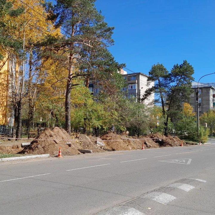 Деревья вырубили в Чите на Угданской — там будет парковка