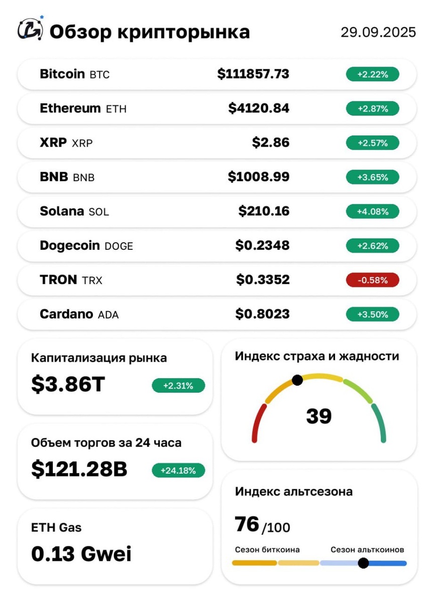 ☕️ Крипторынок на утро 26.09.2025