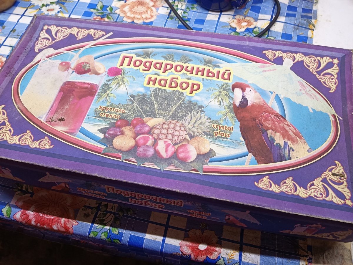 И вручает на выброс пакет с почерневшей от сырости коробкой. А в коробке этой с красным попугаем и надписью "Подарочный набор" что-то робко позвякивает.