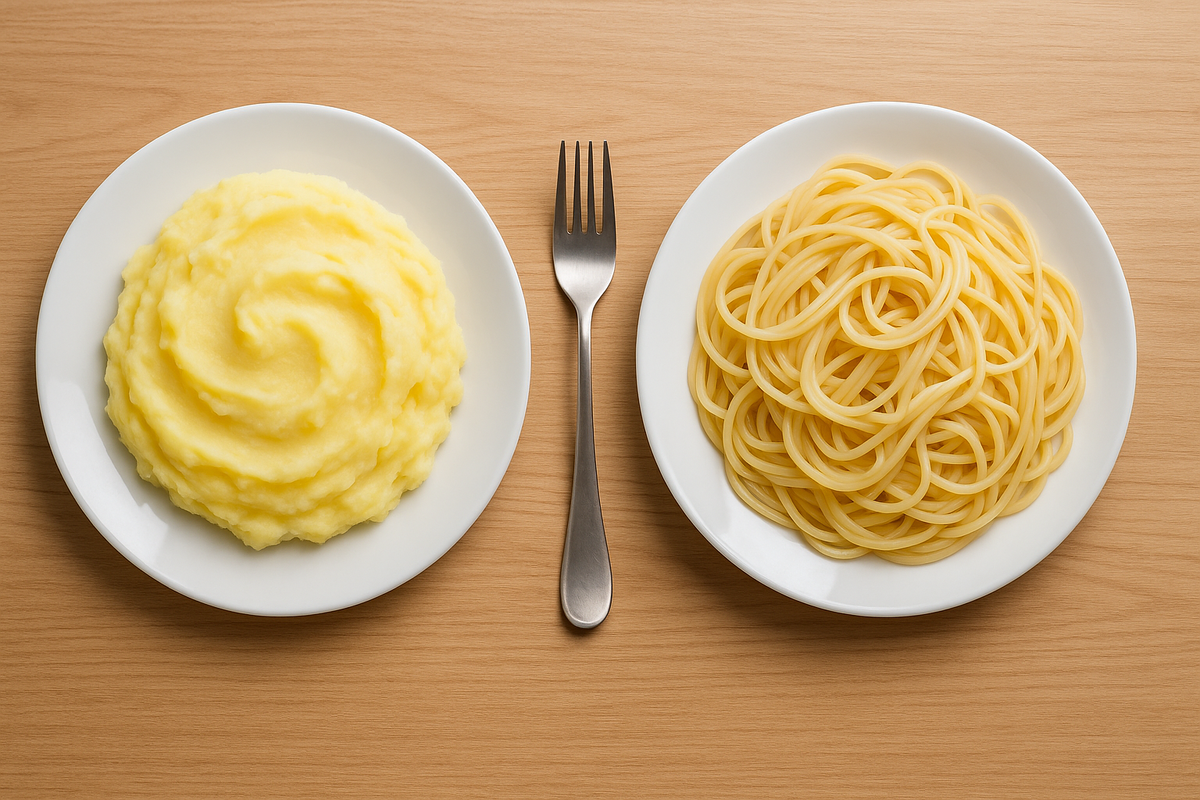 Картофель в нашей культуре — символ домашней еды. Но при диабете он часто оказывается «в чёрном списке». Почему? 📌 Интересно: запечённый в мундире картофель или отварной «в кожуре» поднимает сахар медленнее, чем картофельное пюре. Всё дело в клетчатке и структуре крахмала. Макароны часто воспринимаются как «фастфуд» и «пустые калории». Но и здесь есть нюансы. 📌 В исследовании American Journal of Clinical Nutrition (2018) показали: макароны из твёрдых сортов, включённые в средиземноморскую диету, не повышали риск ожирения и диабета, а наоборот, помогали лучше контролировать вес. Если смотреть в чистом виде: Но! Если сравнивать «пюре с котлетой» и «тарелку белых макарон с кетчупом» — и то, и другое поднимет сахар довольно резко. 📌 Тут всё решает: Я решил проверить на себе. Вывод? Для меня макароны из твёрдых сортов оказались «мягче», чем картофель, но только при правильном приготовлении и сочетании. Картошка и макароны — не враги, а продукты, с которыми нужно уметь договариваться. Для