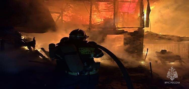 В СНТ «Восход» накануне вечером, в 19:50, загорелся кирпичный садовый дом.