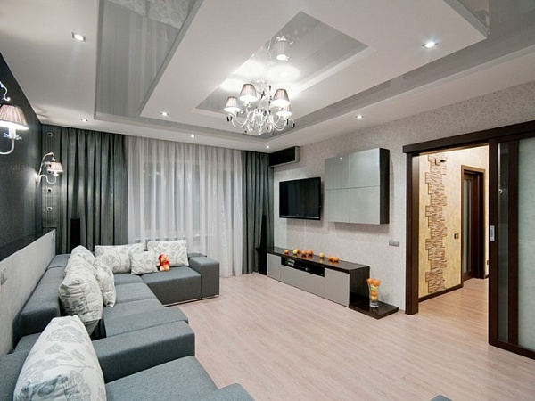 - хай-тек — стекло, глянец, скрытые системы хранения, продуманное освещение