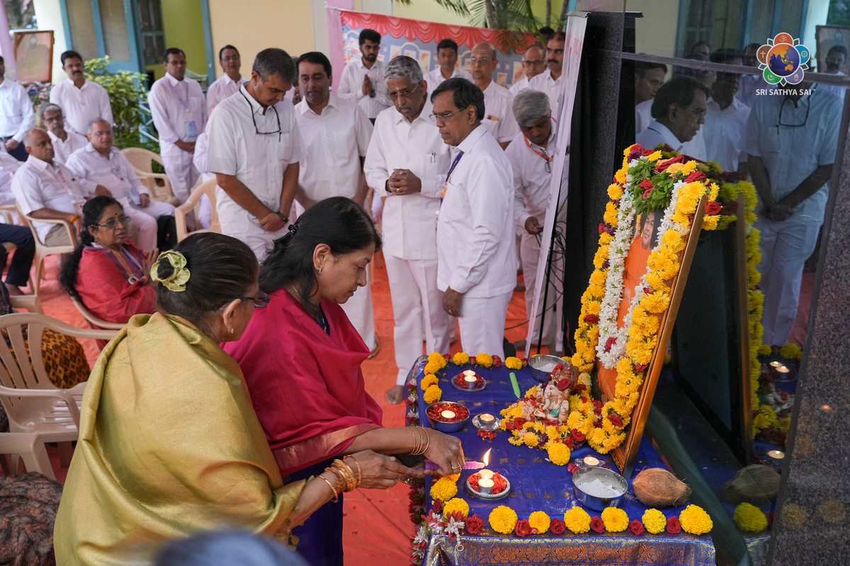 ✨Насладитесь Божественной атмосферой Прашанти Нилаям Новости Прашанти Прашанти Видван Махасабха — День 2. Лекция профессора Саги Камалакара Шарма 27 сентября 2025 г. В знаменательный день Дэви Наваратри священные стены Саи Кульвант Холла вновь наполнились мудростью и преданностью, когда 63-я Прашанти Видван Махасабха вступила во второй день. Вечером прозвучала глубоко просветляющая речь профессора Саги Камалакара Шарма, чьи слова сплели науку, священные писания и духовность в единую ткань понимания. С самого начала профессор Шарма провёл поразительную параллель: «Атом», провозглашаемый учёными, и «Атма», постигаемая искателями. Хотя эти понятия произносятся почти одинаково, их сферы кажутся разными, но, по сути, оба указывают на тонкую тайну бытия. Размышляя о значении Дэви Наваратри, он объяснил, что подобно тому, как разные люди совершают различные виды севы в эти священные дни, так и Божественная Мать проявляется бесчисленными способами, поддерживая творение через Свои бескон