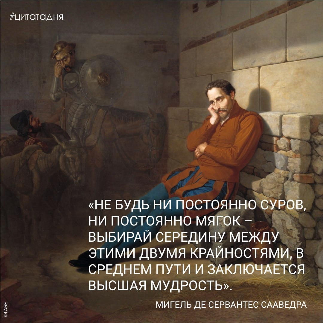 29 сентября 1547 года родился Мигель де Сервантес Сааведра, чьё произведение стало символом литературы всех времён — роман «Хитроумный идальго Дон Кихот Ламанчский». Русский читатель познакомился с «Дон Кихотом» лишь в 1838 году, когда появился первый полный перевод с испанского. До этого были известны лишь переложения с французского. А самый известный и любимый русскоязычными читателями перевод принадлежит перу Н.М. Любимова, опубликованный в 1951 году. Хотите глубже понять стиль Сервантеса и ощутить атмосферу Испании XVI века? Откройте оригинальное испанское издание — там можно целиком погрузиться в философские размышления и тонкий юмор автора. 🧸 Ищите книги в «Иностранке»: в фонде редкой книги хранится около 70 томов произведений Сервантеса, от знаменитых романов до менее известных работ. #цитатадня #мотивация_каждыйдень