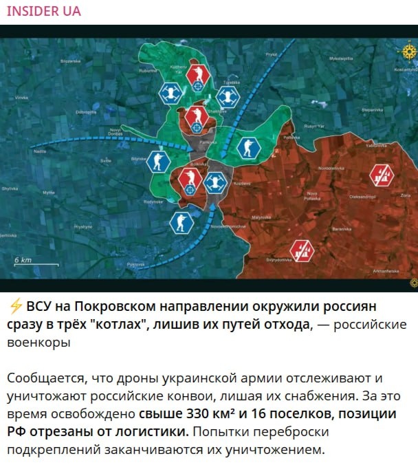Теперь об аргументации, которую использовали «неоконы», как на видео, чтобы убедить Трампа, что у России «нет сильных карт на руках». 11 августа обращали внимание на прорыв армии России на Добропольском направлении. Хотя официальной информации так и не поступало, на карте МО России от 25 сентября прорыв нарисован обширный. Украина стянула все доступные резервы на купирование этого прорыва. Уже 17 августа Зеленский наградил за контрнаступление командира 1-го корпуса Нацгвардии «Азов» (запрещенная в РФ организация, но не путать с запрещенным «Азовом» Билецкого) полковника Дениса «Редиса» Прокопенко — бывшего сидельца «Азовстали». С начала сентября ВСУ предпринимали активные попытки срезать выступ вклинения на участке от Никоноровки до Шахово. 26 сентября понеслась пропаганда об окружениях ВС России, и даже рисовали, что им осталось 400 метров, чтобы срезать выступ. Главком ВСУ Сырский отчитался об успешном наступлении и уничтожении российских войск. Все это позволило Киеву заявлять