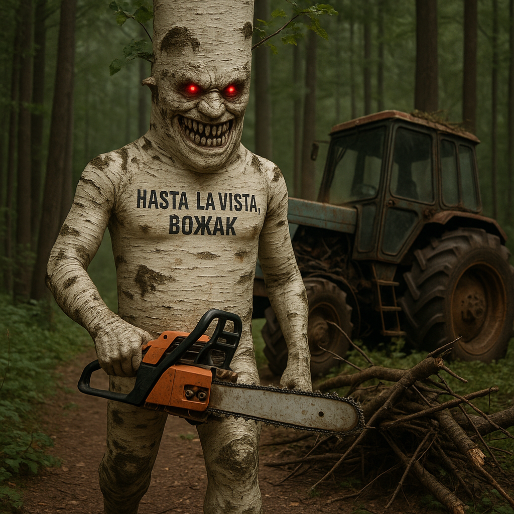 Кажется, Иванов хотел сказать что-то важное. Что-то на уровне «Природа умнее нас», «Человек — лишь временный квартирант на этом мхе», «Настоящий разум растёт из подземных грибов, а не из лекций по гуманитарным наукам». Но по факту вышло так, будто Природа просто заскучала, включила режим «беспощадный косплей» и решила разыграть собственную версию «Терминатора» — но не на чипах, а на биотопливе. И вместо Шварценеггера — вожак-берёза с вай-фаем и грибными щупальцами.