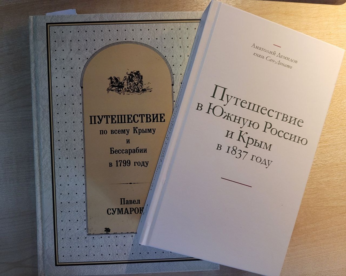 В поездку я заказала себе две книги. Первая к Крыму отношения не имеет. Она о сновидениях — это Дэвид Мэдсен «Шкатулка сновидений». Вторую выбрала тематическую: Анатолий Демидов, князь Сан-Донато «Путешествие в Южную Россию и Крым в 1837 году». Книгу Демидова выложила из багажа — показалась тяжелой. А вот Мэдсена прочитала еще в поезде до Симферополя, так что в Ялте я пошла в Дом книги (улица Московская 9А) и приобрела «Путешествие по всему Крыму и Бессарабии в 1799 году» Павла Сумарокова, а еще — Переса-Реверте «Королева Юга». Кстати, очень приятный книжный: хороший выбор и вполне вменяемые цены. Сумарокова я читала на пляжах, а с работой Демидова ознакомилась уже после возвращения. Начнем же по порядку.