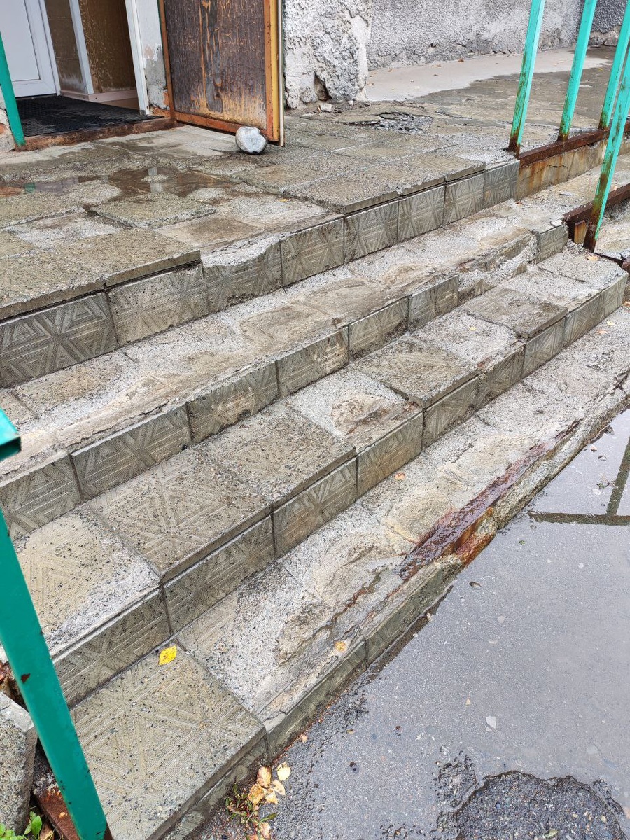 Вот такие ступеньки в аптеку 241 в больничном городке. Спускаясь и поднимаясь по ним можно ноги сломать.