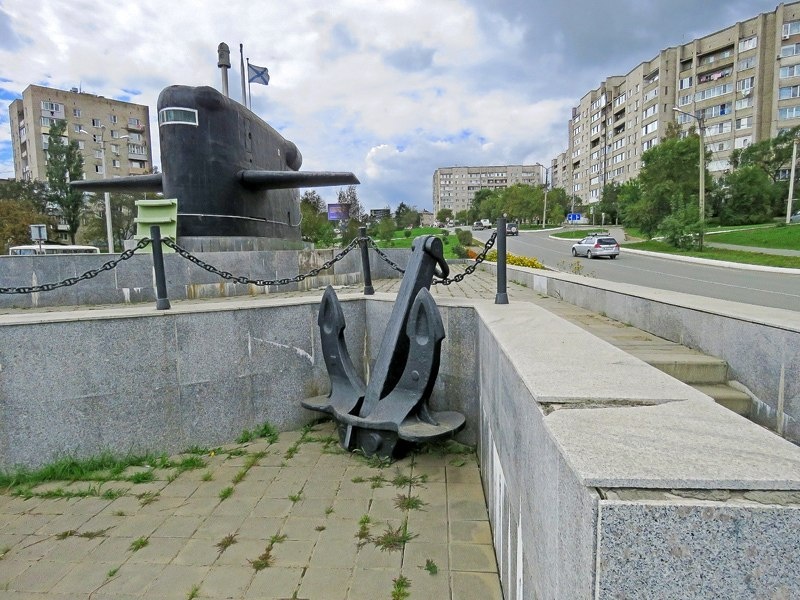 Большой Камень, Приморский кр Город открывает пугающе огромная рубка атомной подводной лодки, поставленная здесь в 2011 году как памятник судоремонтникам "Звезды". Её сняли с субмарины К-434 проекта 667А "Навага", спущенной на воду в 1970 и утилизированной в 2007-м. "Наваги" строились в 1967-74 годах в Северодвинске и Комсомольске-на-Амуре, несли баллистические ракеты Р-27, и в общем морально устарели ещё до развала Тихоокеанского флота. Рубка более современной подлодки смотрелась бы как отрубленная голова на пике, а это — вполне заслуженный свидетель "золотого века" ТОФ. © Илья Буяновский Оценили 95 человек