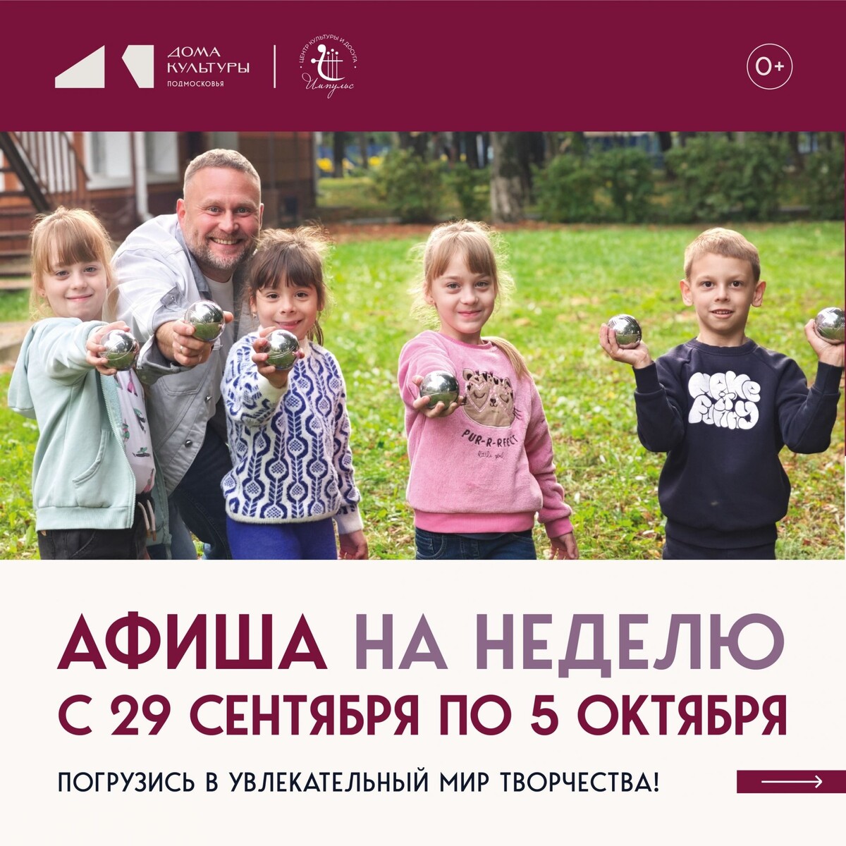Дома культуры городского округа Домодедово приглашают всех на свои мероприятия! Скорее смотри, что ждёт тебя в период с 22 по 28 сентября!🍂🥰