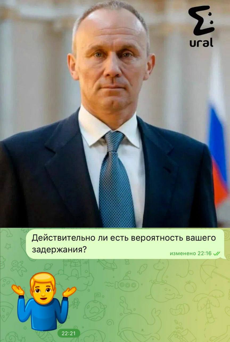 Бывшего вице-губернатора Свердловской области Олега Чемезова задержали силовики. По информации Ural Mash, на днях чиновник ушел с поста по собственному, его жена, в отделе которой проходили реабилитацию всушники, под домашним арестом. На вопрос наших коллег, есть ли вероятность задержания, Чемезов ответил исчерпывающе — 🤷♂️.
