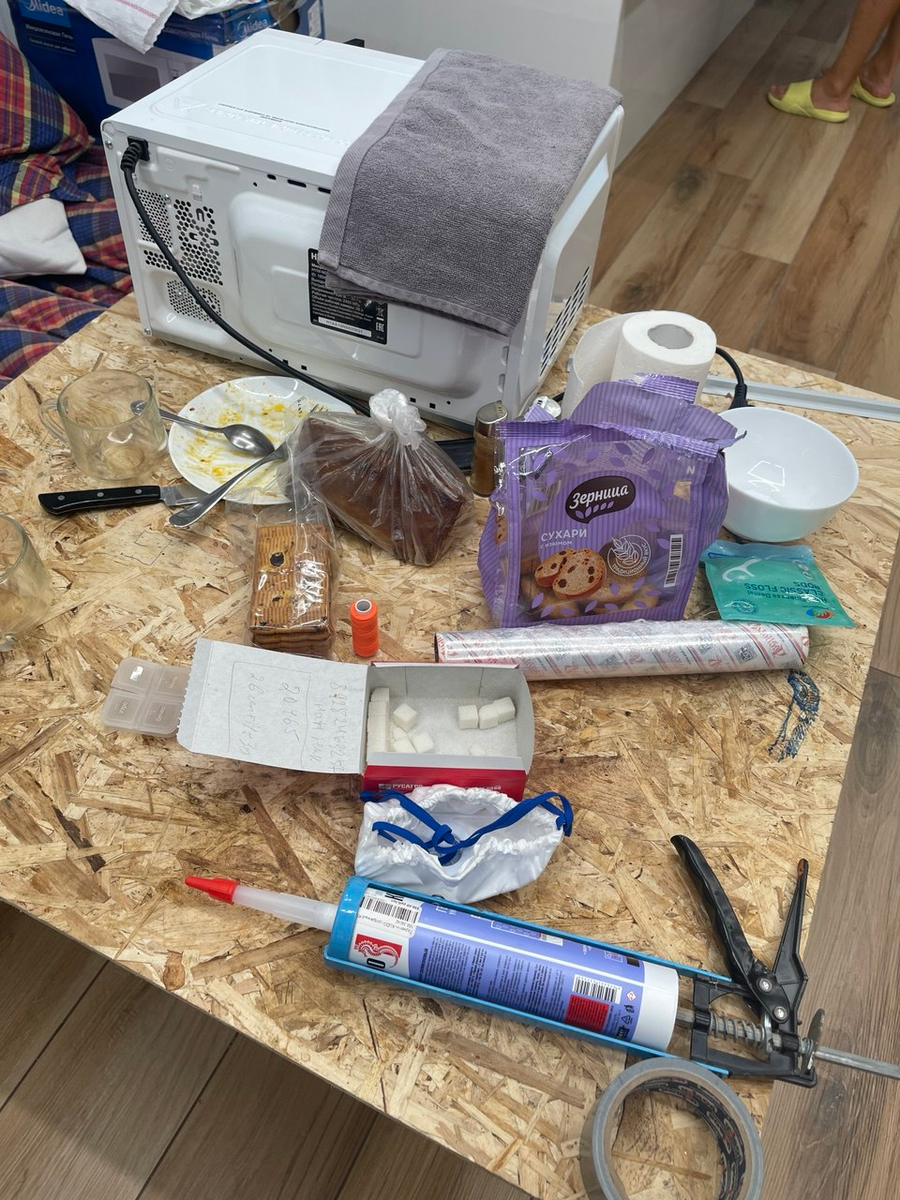 Пока наш дом до конца не отремонтирован. У меня даже нет нормальной кухни. Позже я обязательно покажу, какая у меня будет кухня, а на сегодня наш обеденный стол выглядит вот так: