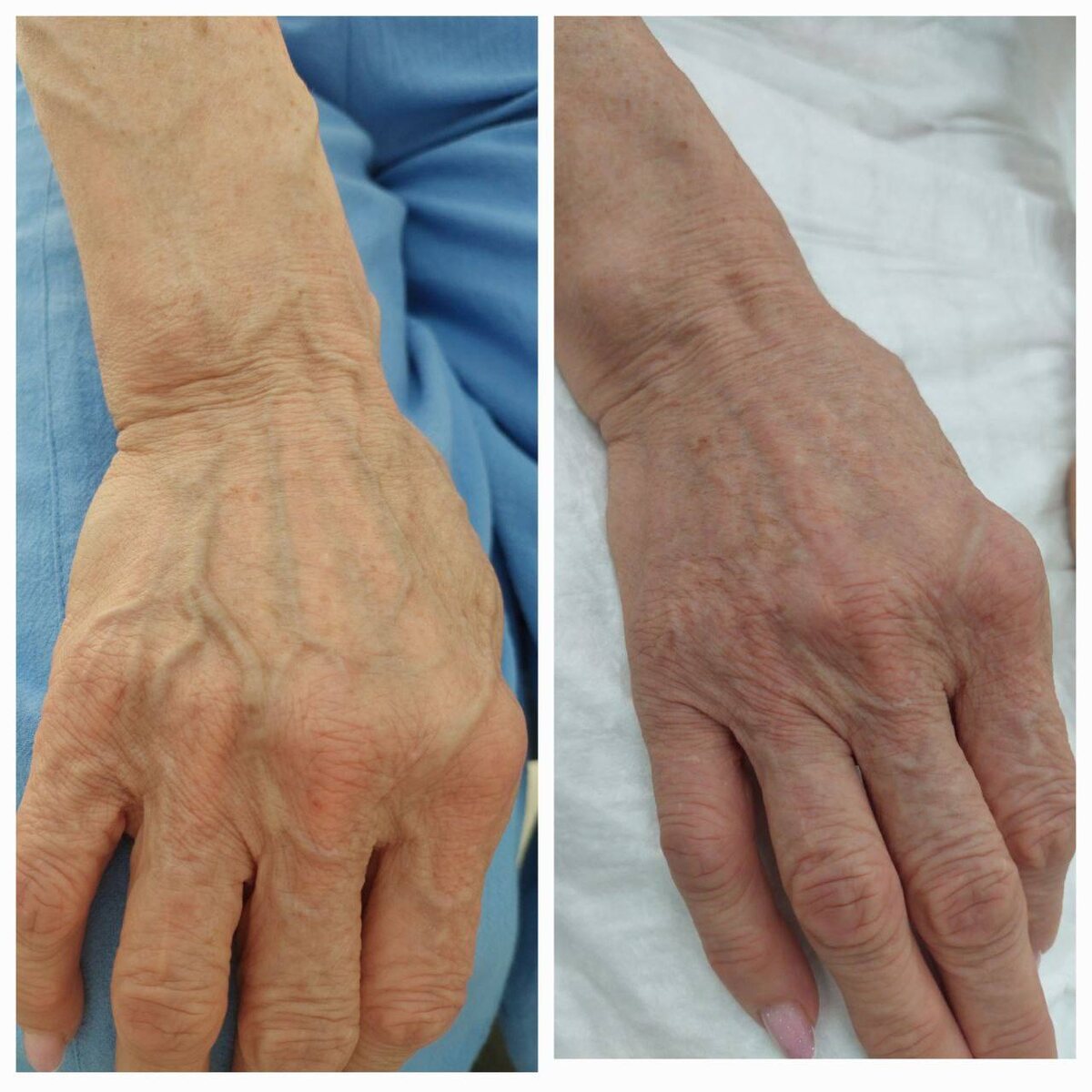 Самый противоречивый пример работы флеболога (по мнению моих коллег сосудистых хирургов, которые как правило либо не делают, либо не хотят делать в силу своих убеждений, что это не болезнь, что это архиважные вены, которые обязательно должны пригодиться пациенту в будущем, либо считают это "блажью" пациента, ввиду того что это чистая эстетика, приводя в пример вены на руках мировых звёзд, таких как Джоли и Мадонна. Спорить с ними бесполезно, земля "плоская" и все тут. Отвечу достаточно резко: коллеги, не хотите не делайте, вас никто не заставляет, лично я это делал, делаю и буду делать (склеротерапия 💉 подкожных вен на руках) и расскажу историю моей счастливой пациентки ( все фото кстати с ее разрешения). Выполнена склеротерапия подкожных вен тыла кисти и предплечья 3 месяца назад, сегодня докололи единичные "тонкие" оставшиеся венки. Пациентка ведёт публичные мероприятия и ее много лет смущал эстетичный вид вен на руках, цитата: я счастлива, мне больше не надо скрывать свои руки (