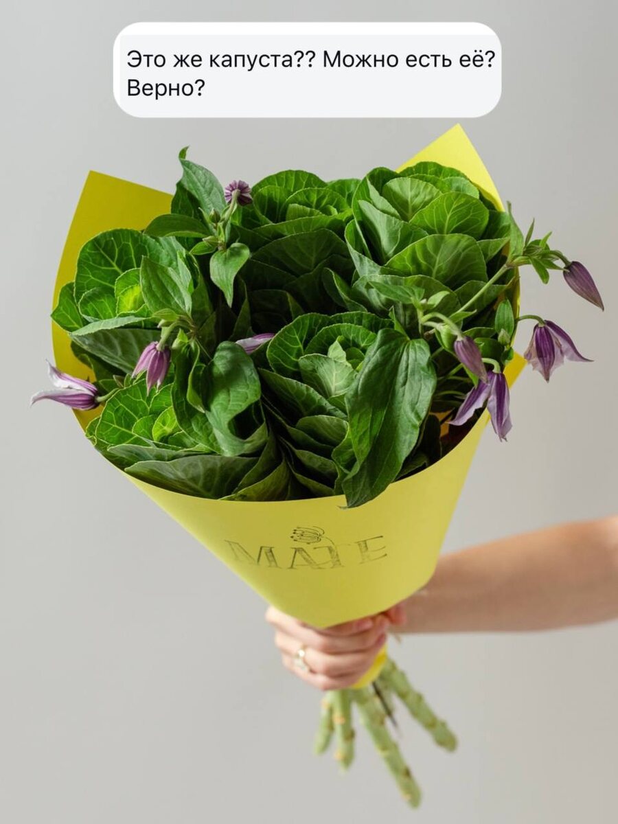Ох уж этот ежегодный вопрос… Любители капусты, мы заявляем, брассика съедобна и содержит в себе целый ряд витаминов и минералов, что делает ее полезным растением. Однако, вариант подарил в качестве цветов, порадовал, а потом еще и салатик бахнул – не рекомендуем 😅 В случае нарушений наших рекомендаций за ваш ЖКТ ответственность не несем 🤣