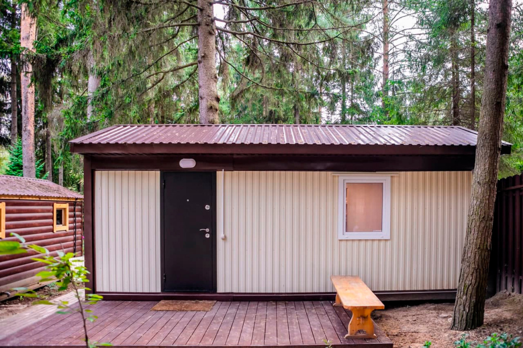 - Водоснабжение и канализация: Мы делаем внутреннюю разводку сантехники, трубы выводятся стандартно в стену или в пол (по согласованию). Можем поставить резервуар для воды и насосную станцию в бытовке.