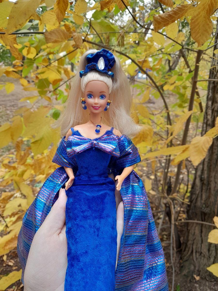 Когда был объявлен новый чудесный челлендж: Я сразу стала выбирать участницу из своих куколок) И обнаружила, что одна прекрасная девушка в вечернем платье уже готова к торжественному выходу! Кэролайн-одна из немногих моих кукол, кому я не меняла образ. В ней прекрасно все! Но в тоже время этот образ требует определённого антуража. И сидеть бы Кэролайн дальше в ожидании Нового года, если бы не челлендж) А ещё это первая прогулка красавицы: Все фотографии сделаны по пути в школу) Так как кошечки-собачки там тоже любят гулять, я не рискнула ставить куколку на землю в листочки) Хотя все фотографии примерно одинаковые, мне понравилось, как синее платье смотрится на фоне жёлтой листвы😍😍😍 Да и прогуляться с куколкой в первый раз - это всегда особенно приятные и радостные эмоции 💖💖💖 Всем спасибо за внимание и до новых встреч🍂🍂🍂