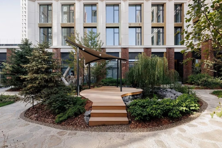 Представьте себе: шаг за порог дома – и вы будто переноситесь из шумного мегаполиса в тихий лесной уголок. И это не фантазия, это уже реальность для жителей жилого комплекса Sydney Prime от ГК ФСК, который расположился в Хорошево-Мневниках, прямо на первой линии Москвы-реки. Здесь создан настоящий природный оазис с декоративным прудом и живописным ландшафтом, где город и природа наконец-то слились в гармонии! Идея пространства принадлежит Хироки Мацуре, основателю международного бюро MADMA urbanism+landscape. Вместе с архитектурно-ландшафтной компанией «Илья Мочалов и Партнеры» он разработал концепцию, где двор – это продуманная экосистема, имитирующая лесной массив. Sydney Prime – это дом клубного формата, состоящий из двух корпусов общей площадью 15,5 тыс. кв. м. Здесь всего 80 квартир с разнообразными планировками и подземный паркинг на 113 машиномест. Корпуса выстроены в П-образной форме, создавая уютное камерное пространство – двор площадью 900 кв. м. Именно в нем и раскинулся лес