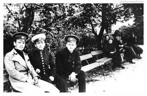 Гимназист К. Г. Паустовский (крайний слева) с друзьями