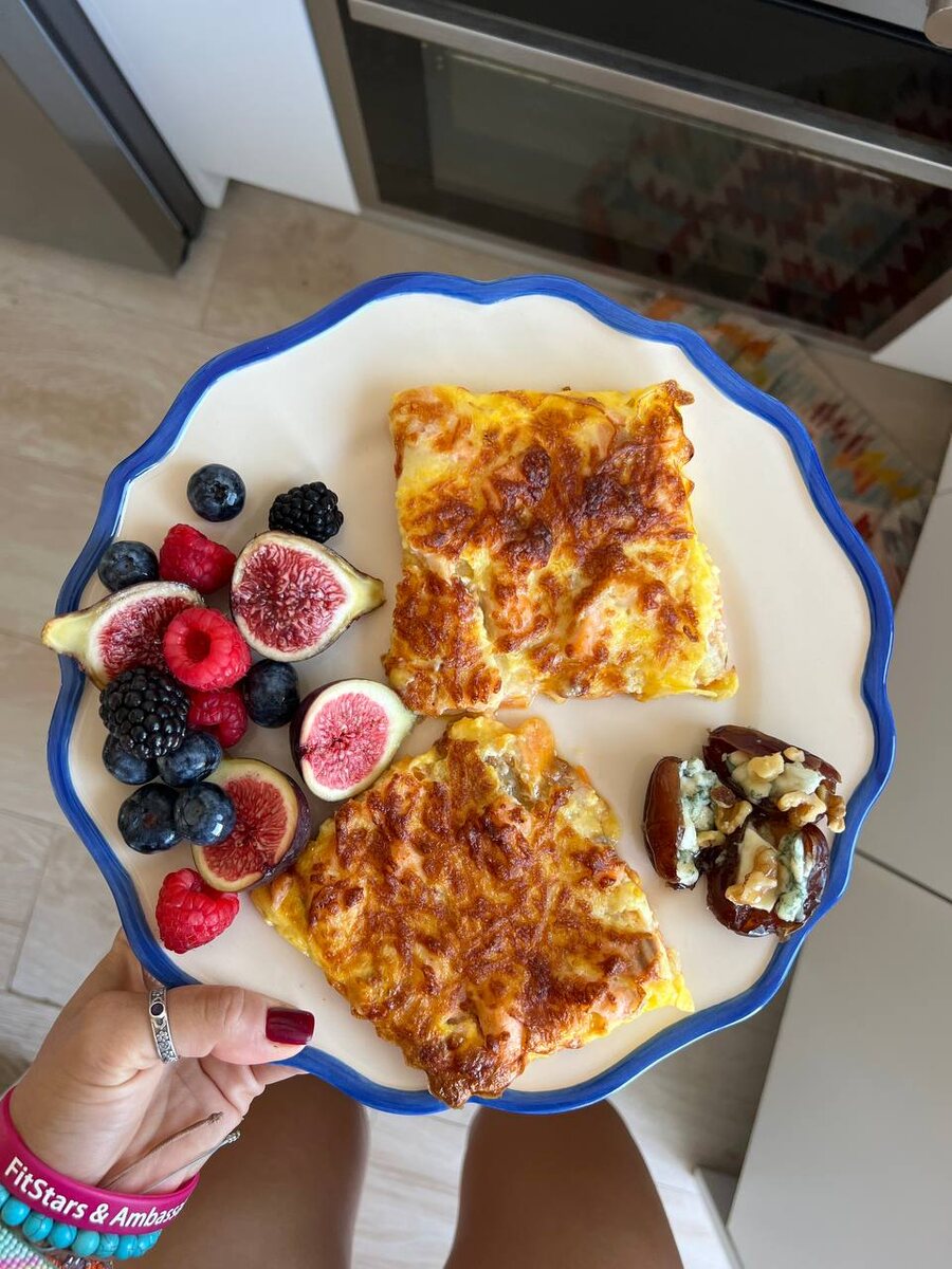 Белковый пирог с бататом, творогом и лососем в аэрогриле