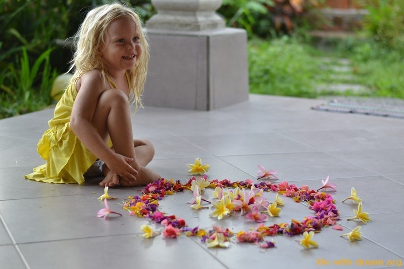 Итак, по всему острову Бали, в одно и то же время, женщины разговаривают с божественным миром, они благословляют предков, просят защиты и поддержки божественных сил, благодарят пространство своего дома, общаются с огнем, водой, землей, воздухом, эфиром. Они наполняют пространство, где живут, тонкой энергией благодарности. Очищают свой дом от накопленной тяжелой энергии. И, как истинные дипломаты, тактично договариваются с недобрыми силами (а они тоже есть в мире, даже на чудесном острове Бали), преподнося им дары и прося не вмешиваться в их жизнь, находя точку равновесия.