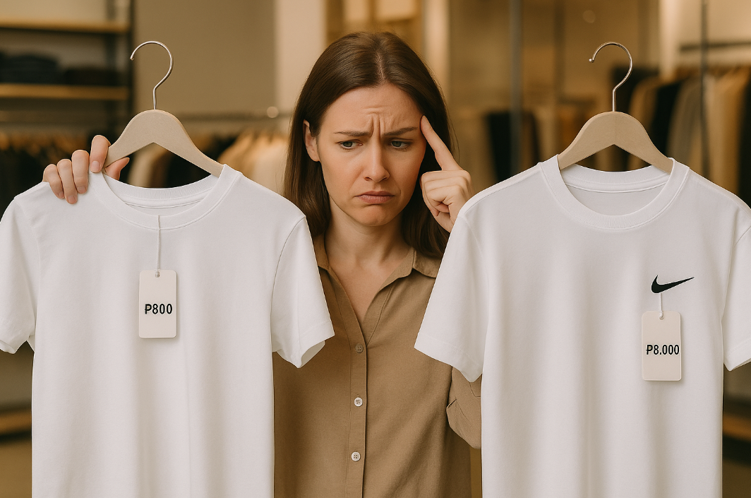 Ты заходишь в магазин. На одной полке - белая футболка за 800 рублей. На другой - такая же, но с маленьким логотипом. Цена — 8000.