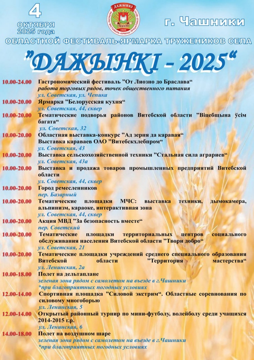 🌾4 октября в Чашниках состоится областной фестиваль-ярмарка тружеников села «Дажынкi-2025