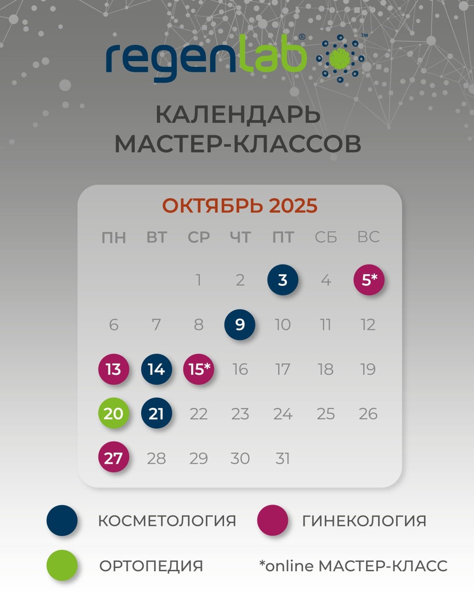 МАСТЕР-КЛАССЫ REGENLAB В ОКТЯБРЕ За время мастер-класса по швейцарской методике аутологичного клеточного омоложения PRP RegenLab вы: 🍂узнаете о возможностях богатой тромбоцитами плазмы 🍂разберете инновационные направления клеточной терапии 🍂проведете процедуру PRP-терапии под руководством сертифицированного тренера RegenLab После мастер-класса мы остаемся с вами на связи, чтобы консультировать по всем вопросам и нестандартным ситуациям 💙 *для участия необходим диплом о высшем медицинском образовании Узнать подробнее здесь 📍г. Москва, ул. Новый Арбат, дом 31/12