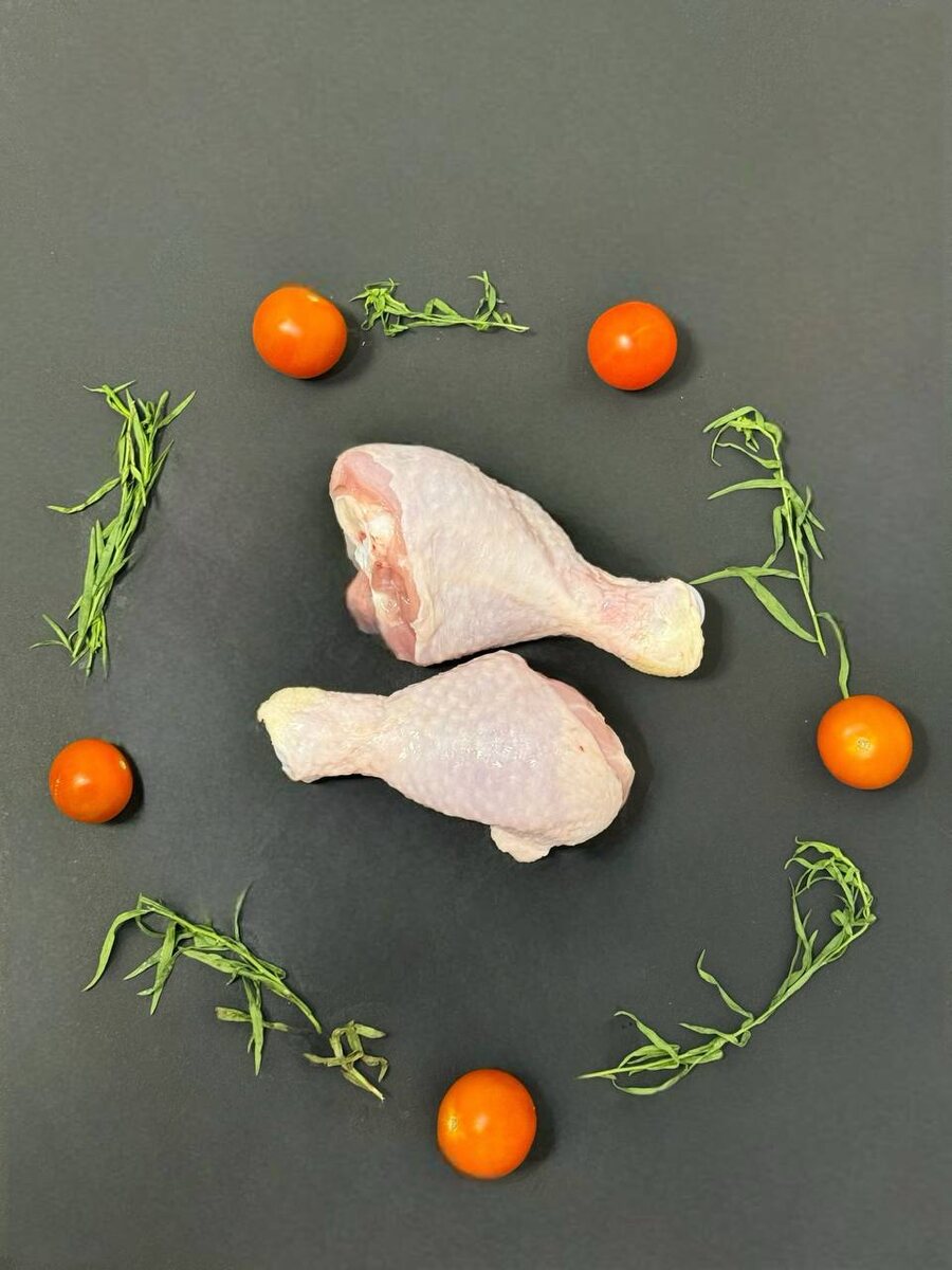 Промойте и обсушите куриные голени. Посолите, поперчите и слегка обжарьте на сковороде до румяной корочки.